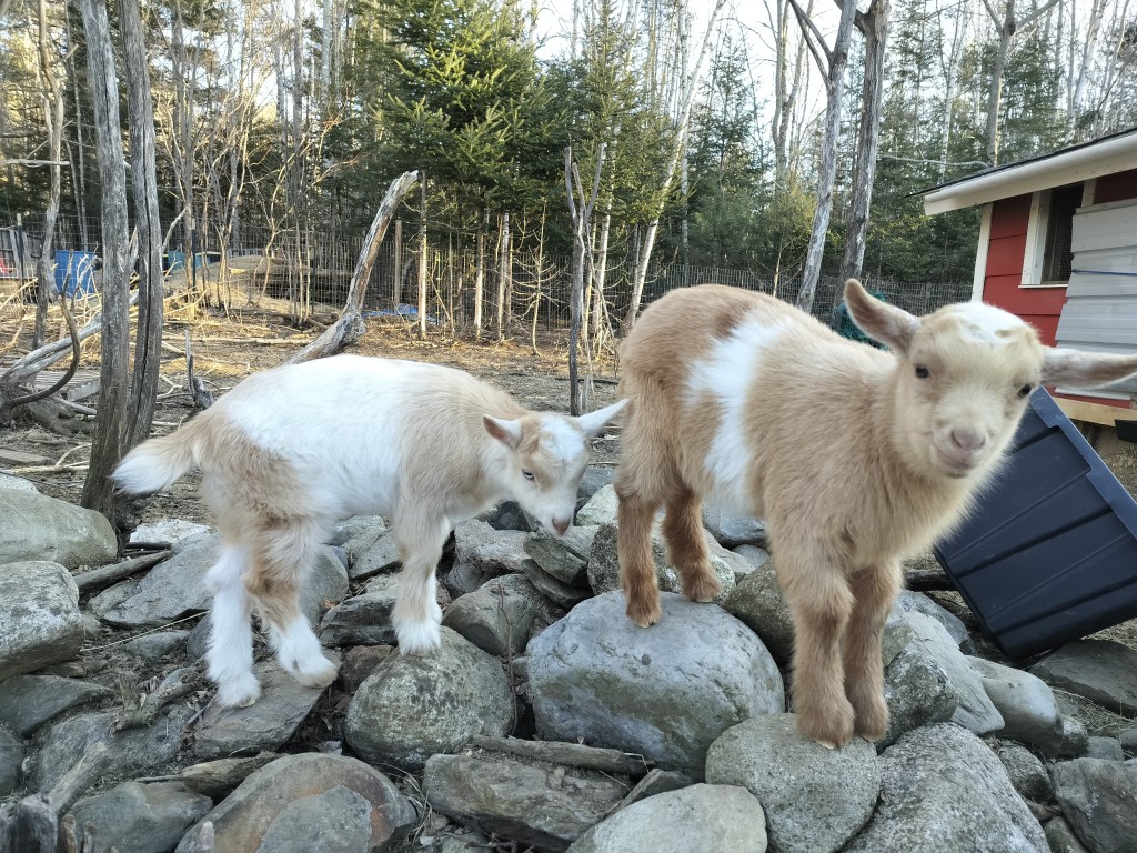 The farm is home to 3 goats, Pippa, Saffron, and Monty.